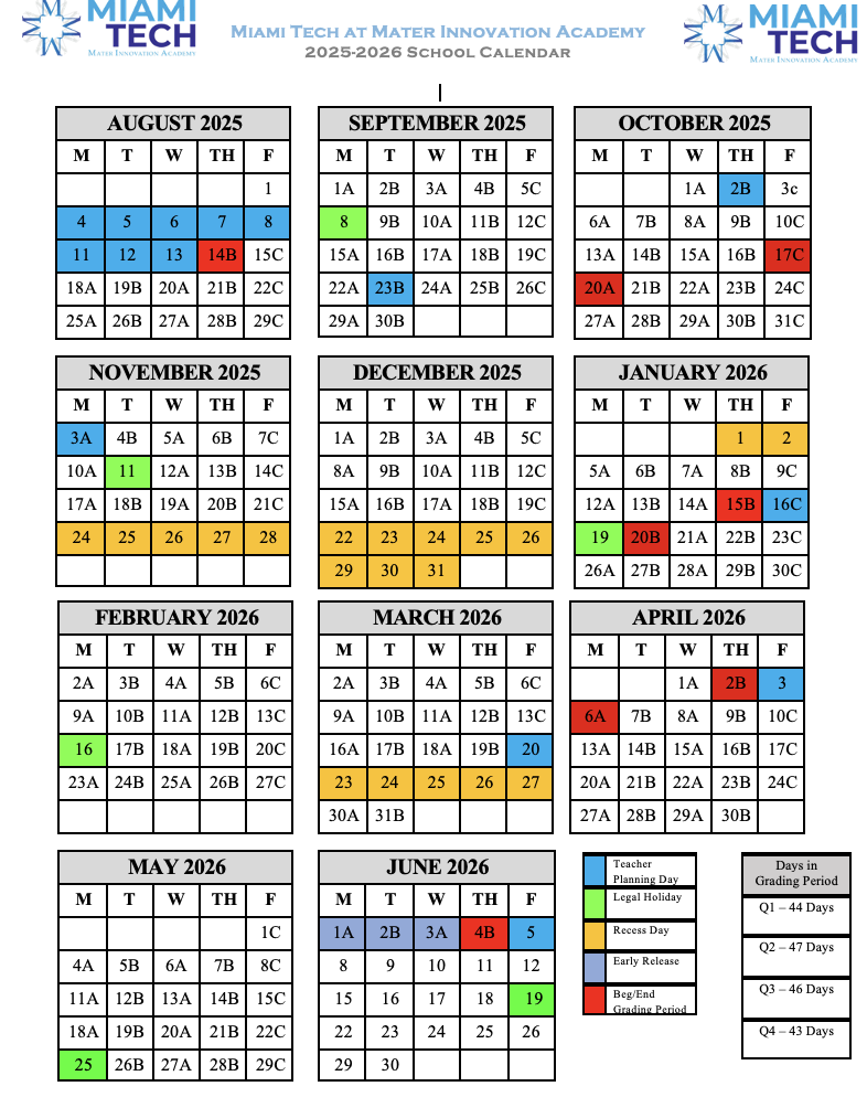 Calendar for 2025 - 2026